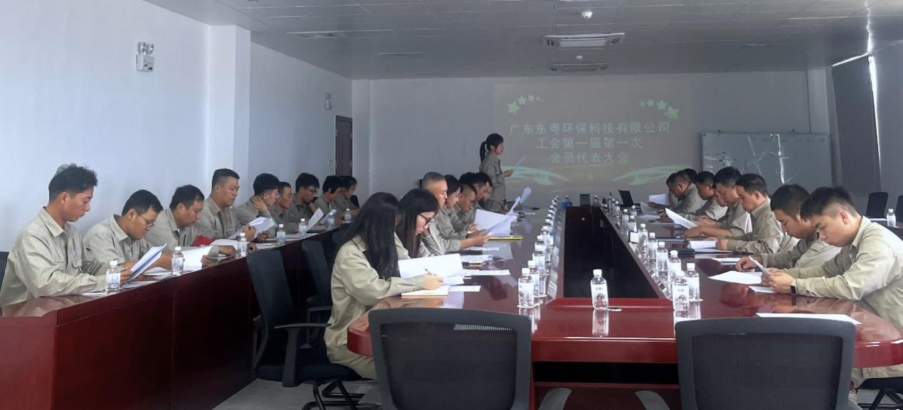 2023年10月14日下午,惠城環保集團旗下子公司東粵環保工會第一屆第一次會員代表大會順利召開,公司總經理李恩泉、副總經理吳榮華、各部門工會會員代表參加會議。本次會議主題是選舉第一屆工會委員會和經費審查委員會。