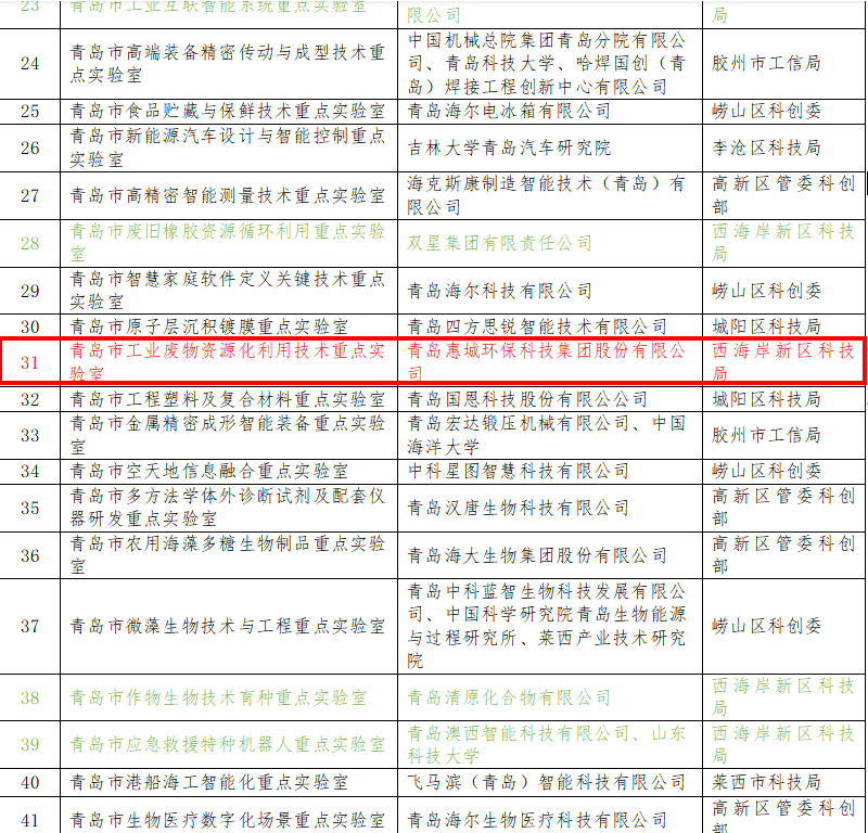 青島市重點實驗室是開展前沿創(chuàng)新領域工作的重要支撐,更為青島市高質量發(fā)展保駕護航。近年來,青島惠城環(huán)保科技集團股份有限公司始終以“綠水青山就是金山銀山”為發(fā)展理念,在工業(yè)“三廢”資源循環(huán)利用技術創(chuàng)新及工業(yè)應用等方面積累了豐富的成功經驗,作為環(huán)保型高新技術企業(yè),公司將充分發(fā)揮行業(yè)和技術領先優(yōu)勢,面向國家戰(zhàn)略科技發(fā)展技術需求,開展應用基礎研究及競爭前沿技術研究,為提升產業(yè)核心競爭力、推動行業(yè)技術進步提供支撐。